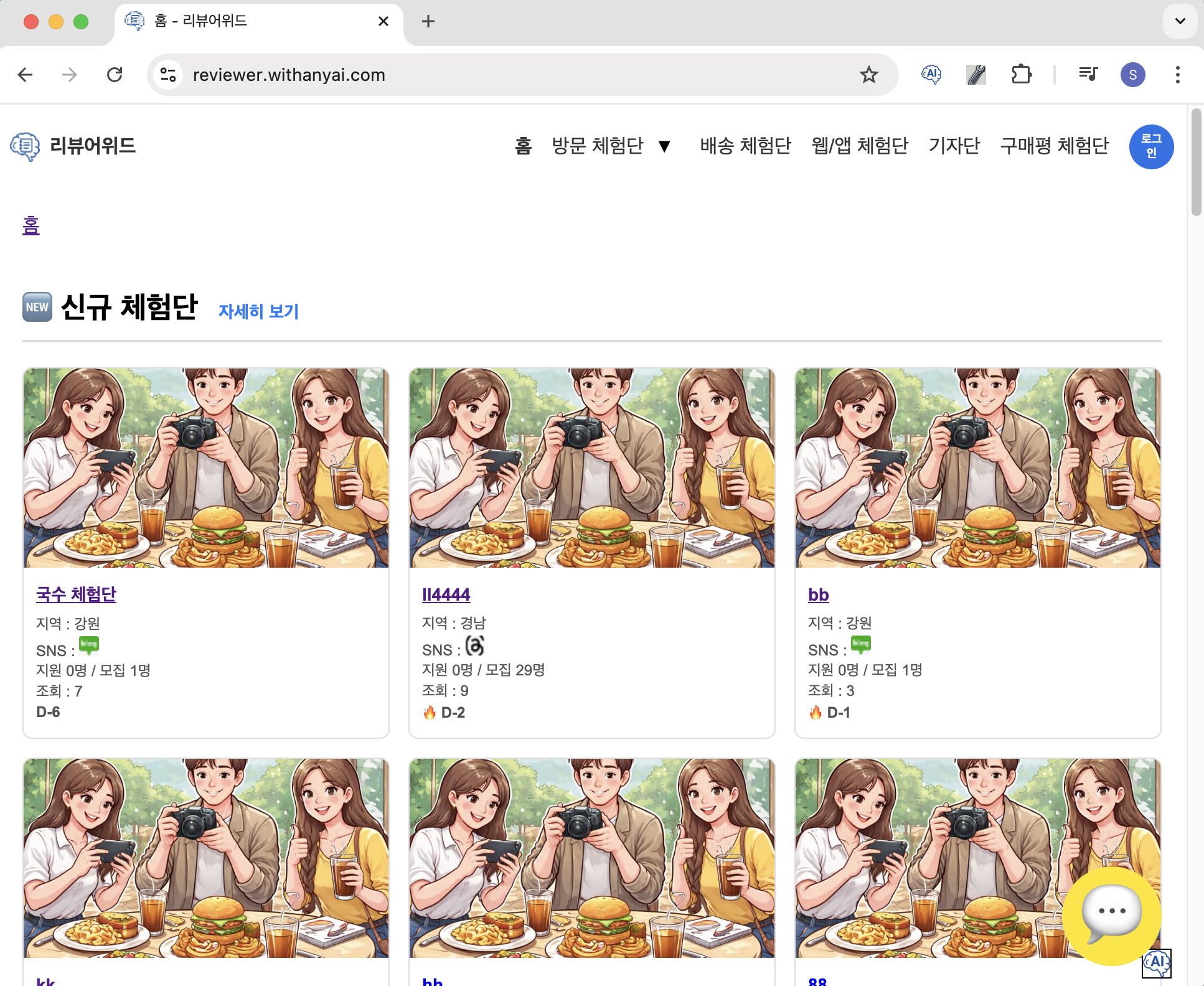 자체 제작한 체험단 플랫폼 리뷰어위드 에서 체험단을 모집합니다. (약 1주)