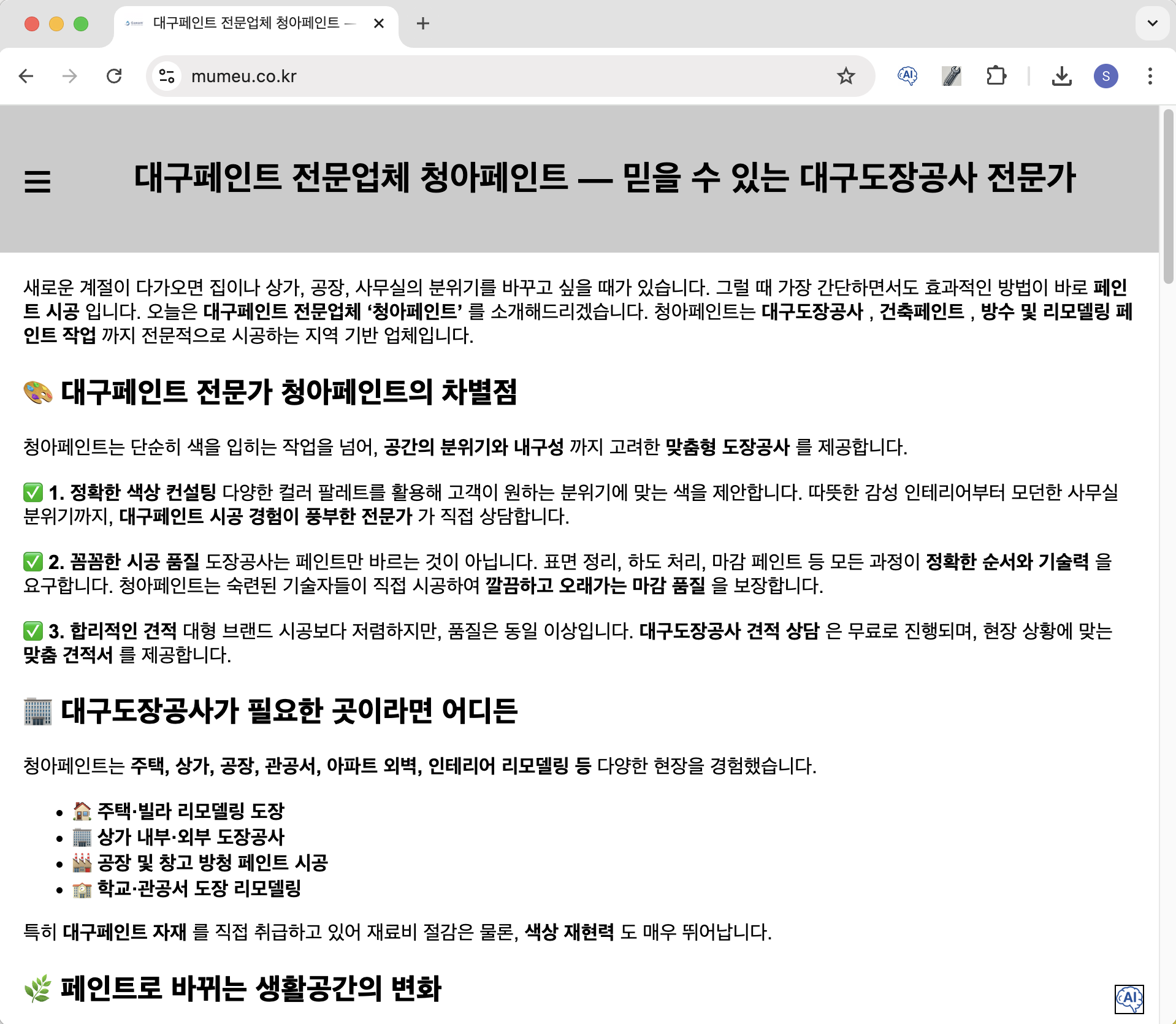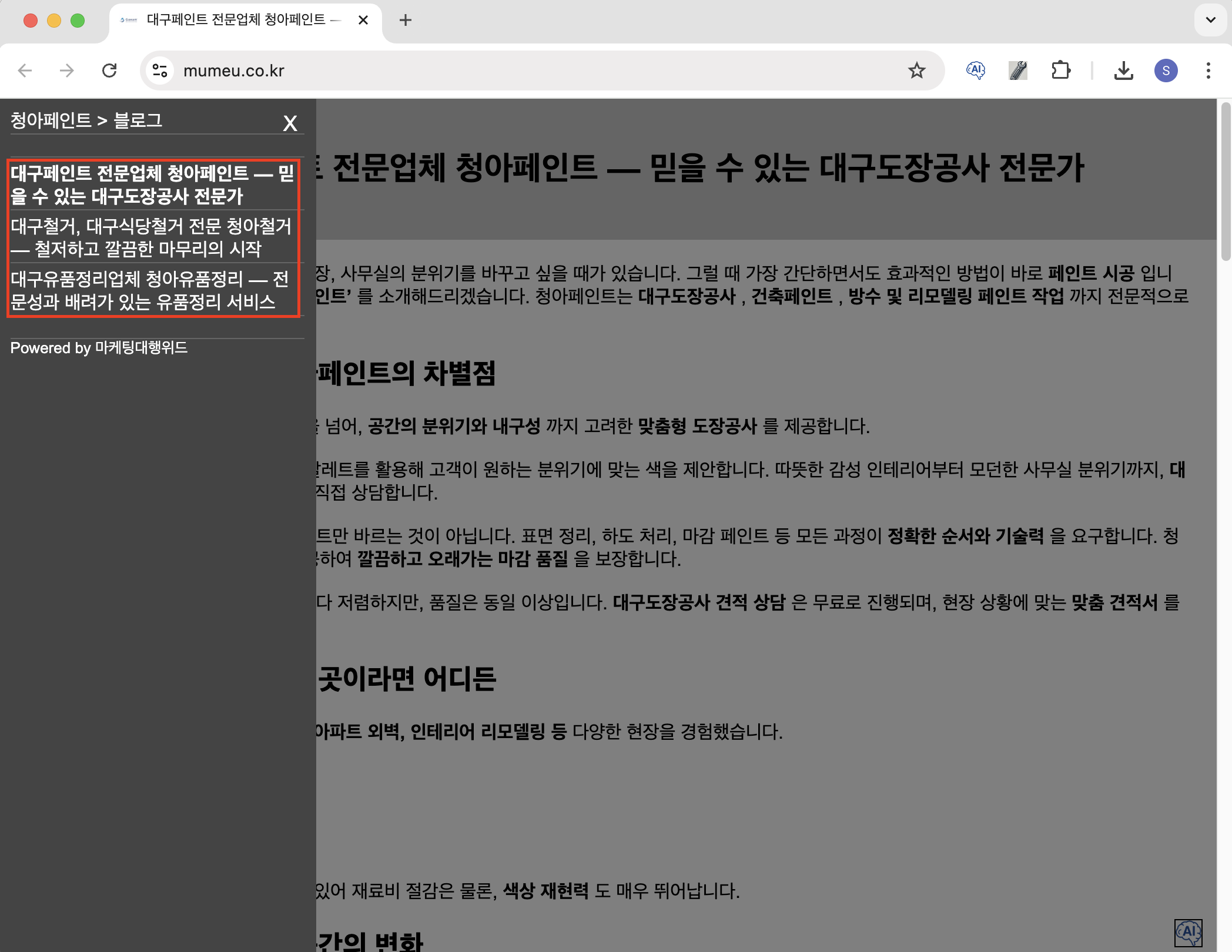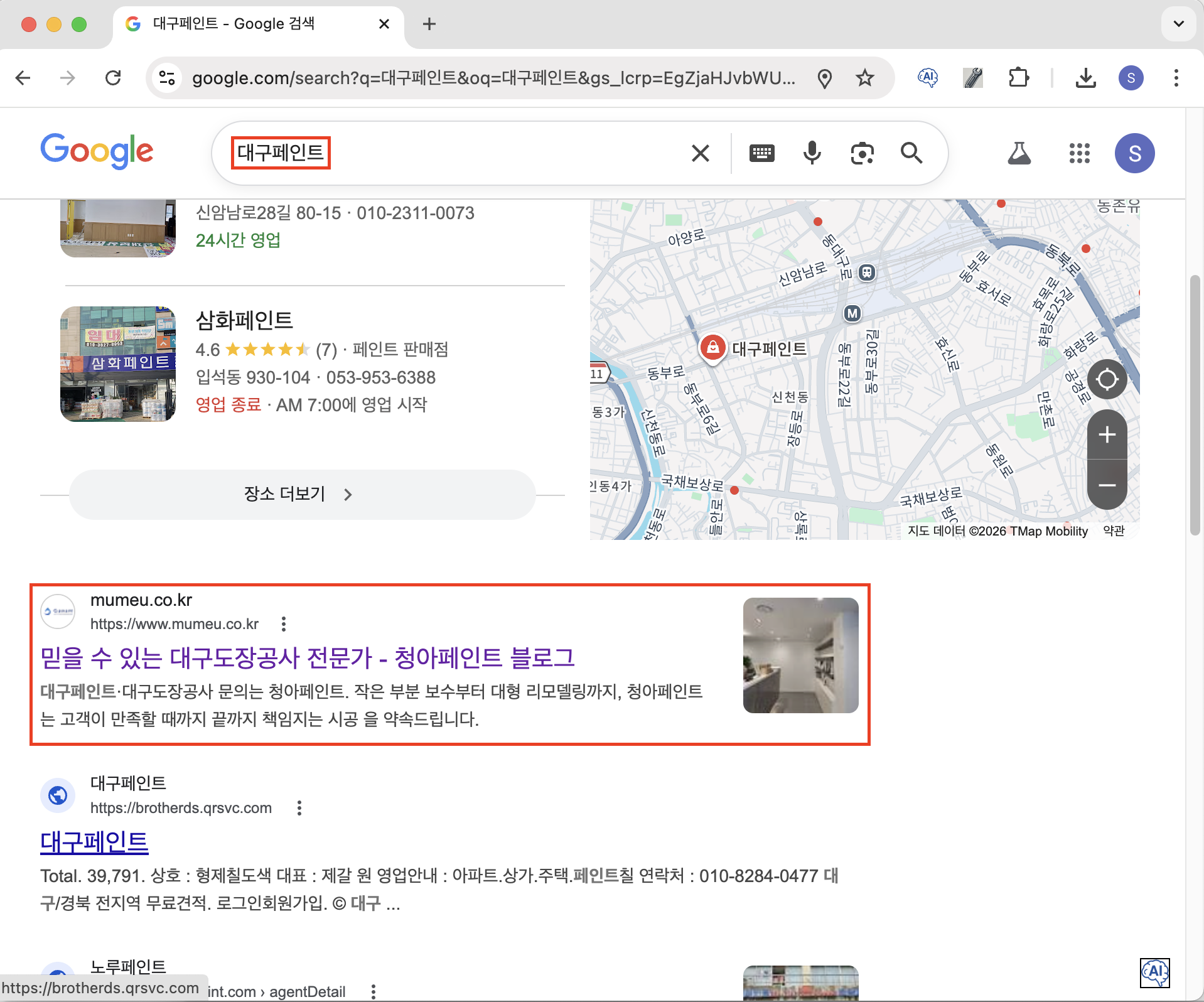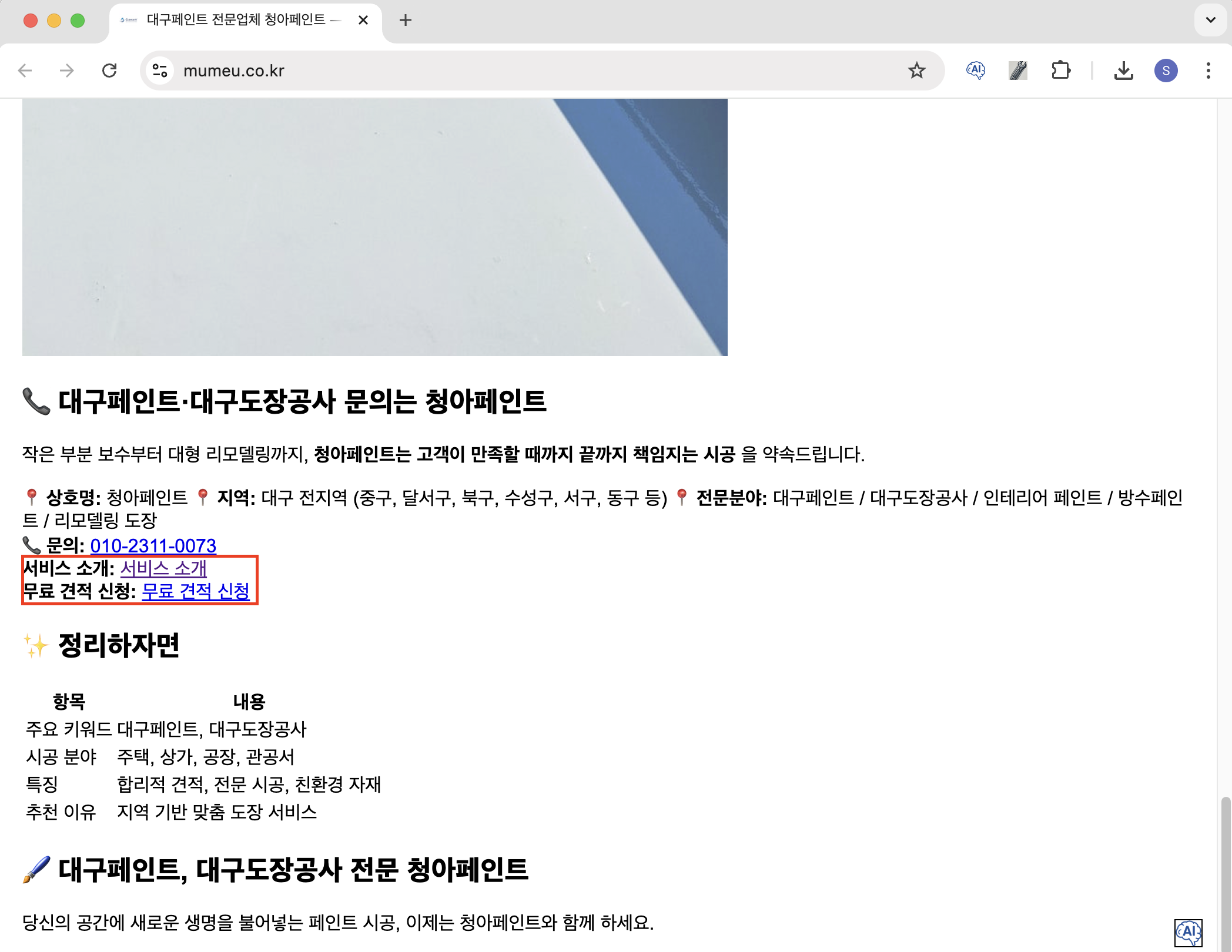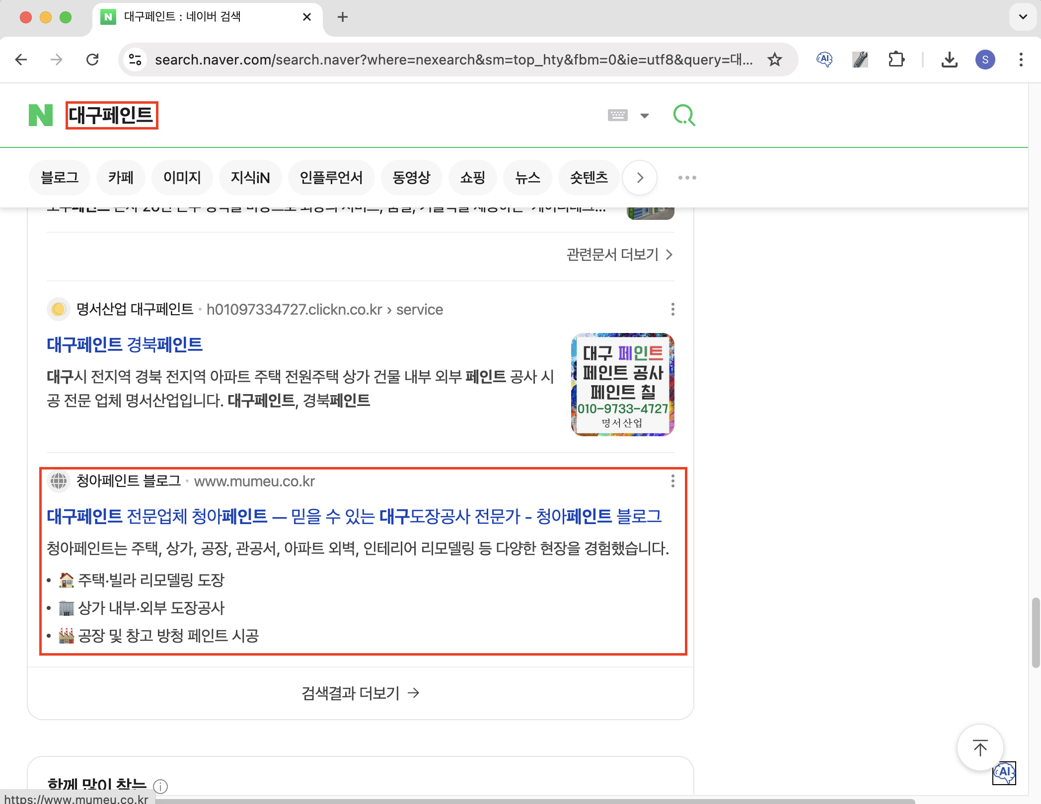 대구페인트 키워드 구글 쳇페이지 노출 예