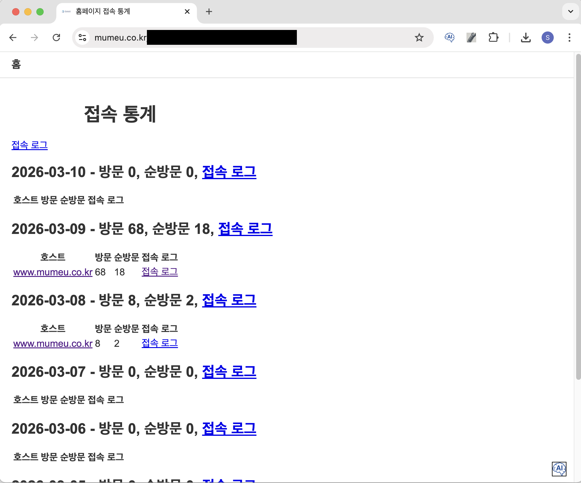 접속 통계 페이지 제공